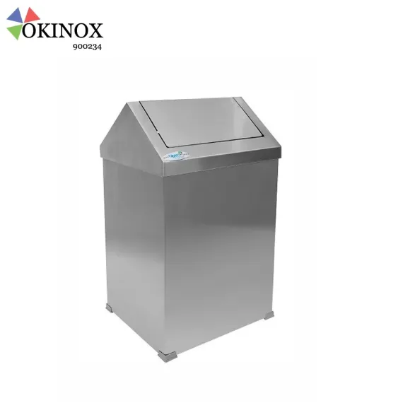 Okinox 54 litre çatı kapaklı çöp kovası, AISI 430 paslanmaz çelikten üretilmiştir. Ticari ve endüstriyel alanlarda hijyenik ve uzun ömürlü kullanım sağlar.