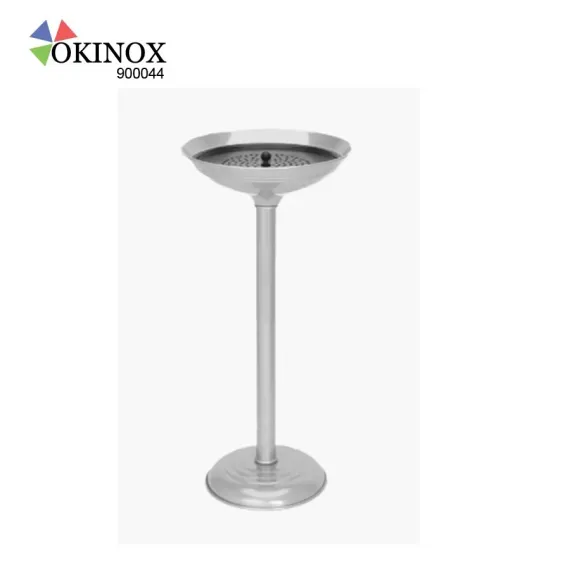 Okinox Kadeh Tipi Küllük ve İzmaritlik, paslanmaz çelik gövdesi ve tel ızgaralı tasarımıyla uzun ömürlü, hijyenik ve şık bir kullanım sunar. Otel ve işletmelerin tercihidir.
