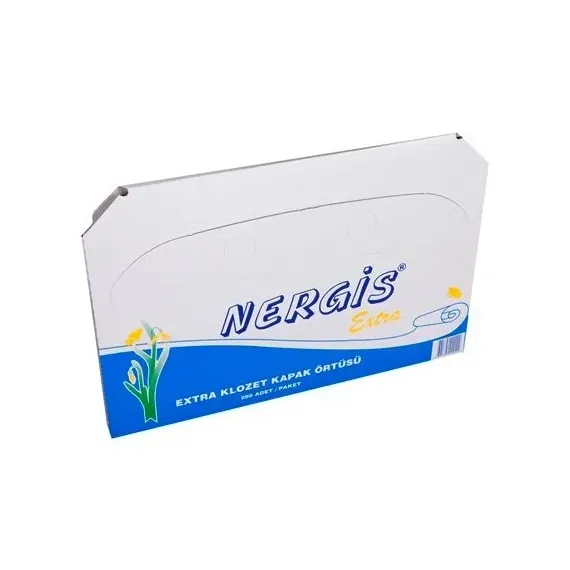 Nergis klozet kapak örtüsü, çift katlı klozet örtüsü, tek kullanımlık tuvalet örtüsü, hijyenik klozet örtüsü, endüstriyel tuvalet kapak örtüsü, otel ve restoran tuvalet ürünü, dispenser uyumlu klozet örtüsü, Hijyen Market klozet örtüsü, toplu kullanım tuvalet ürünleri.