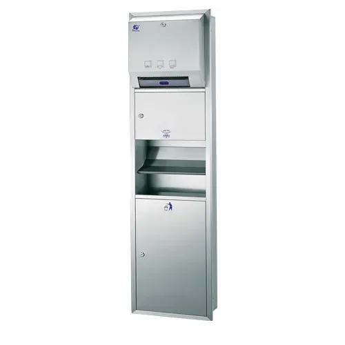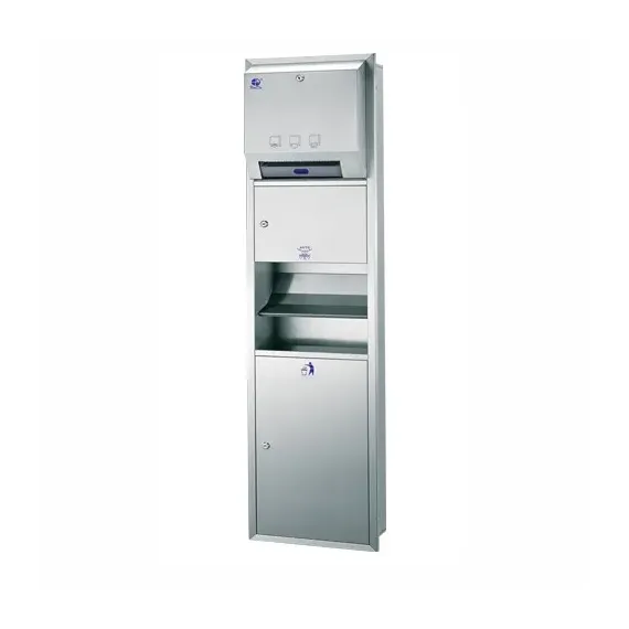 Xinda Kombi Sistem sıva altı fotoselli kağıt havluluk, el kurutma makinesi ve çöp kovasıyla hijyen ve estetiği bir arada sunar. Paslanmaz çelik gövde.