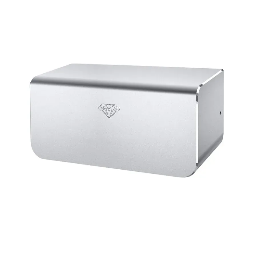 Yüksek kaliteli alüminyum gövde, uzun ömürlü kullanım ve modern bir görünüm sunar. Elmas kesim kenar detayları ve mavi ışıklı kurutma alanı, işletmenize zarif bir dokunuş katar. Kompakt ölçüleriyle dar alanlarda kolayca monte edilebilir.