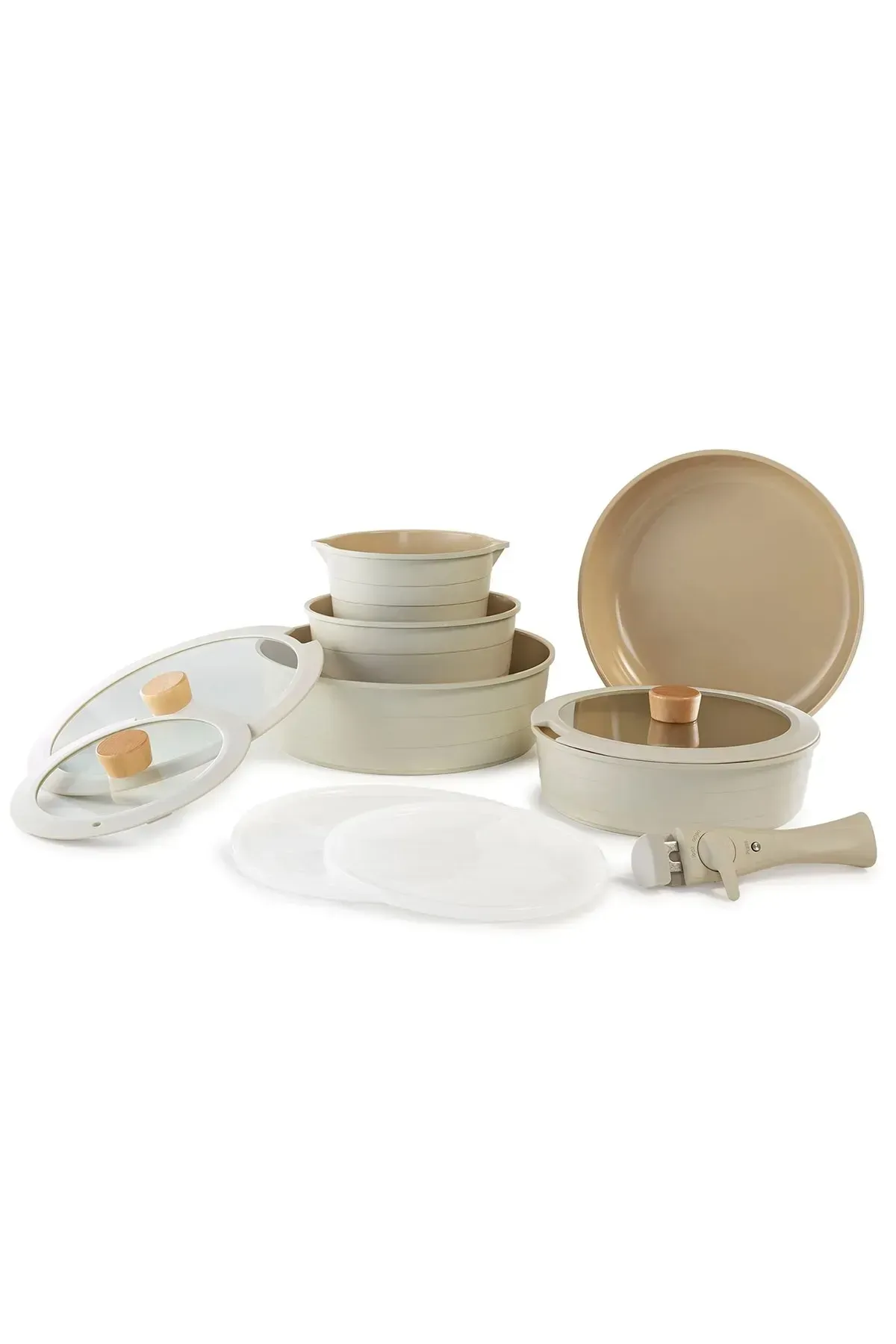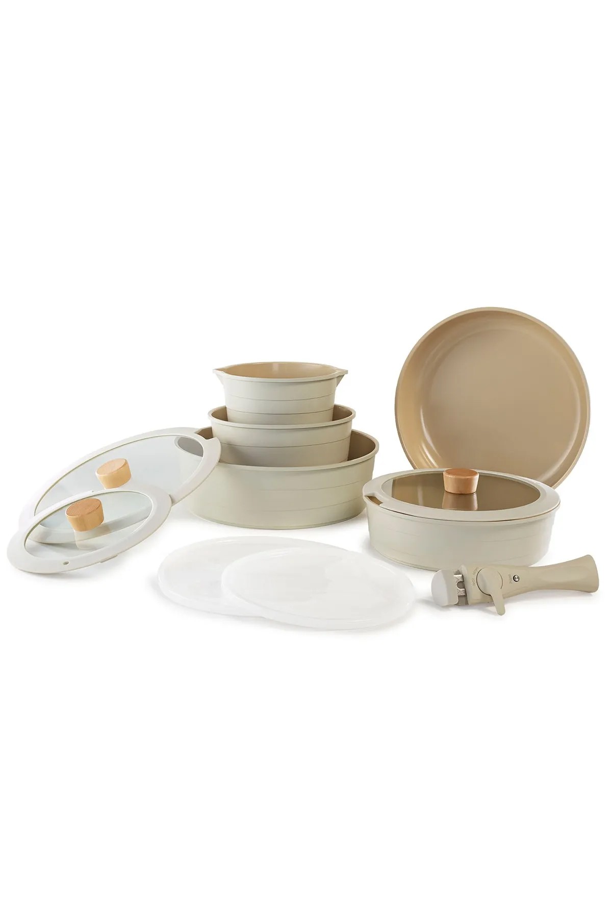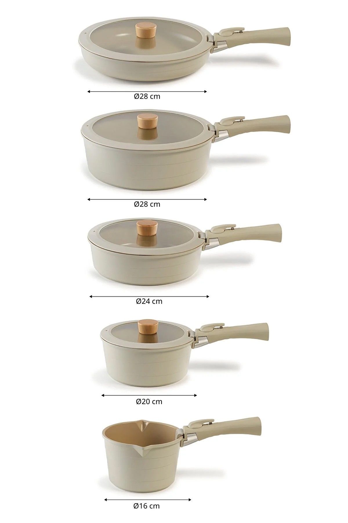 NEOFLAM Midas Bej 11 Parça Tencere Tava Seti Ayrılabilir Saplı, İç İçe Geçebilen, İndüksiyon Uyumlu