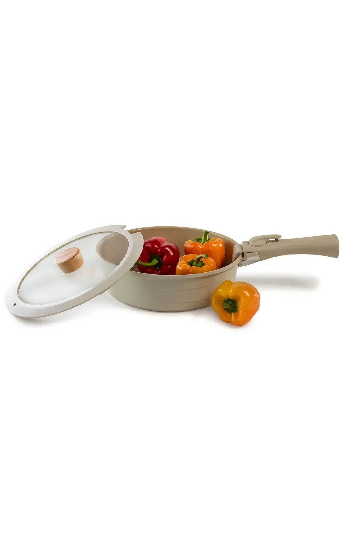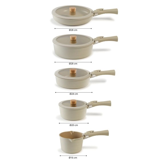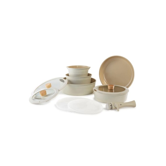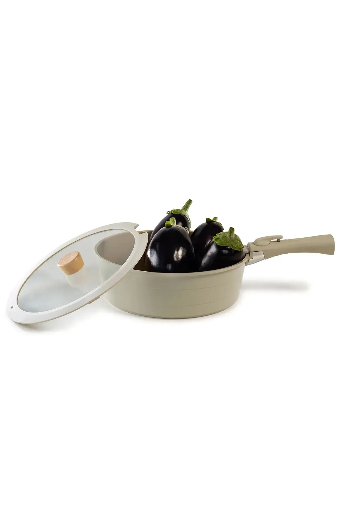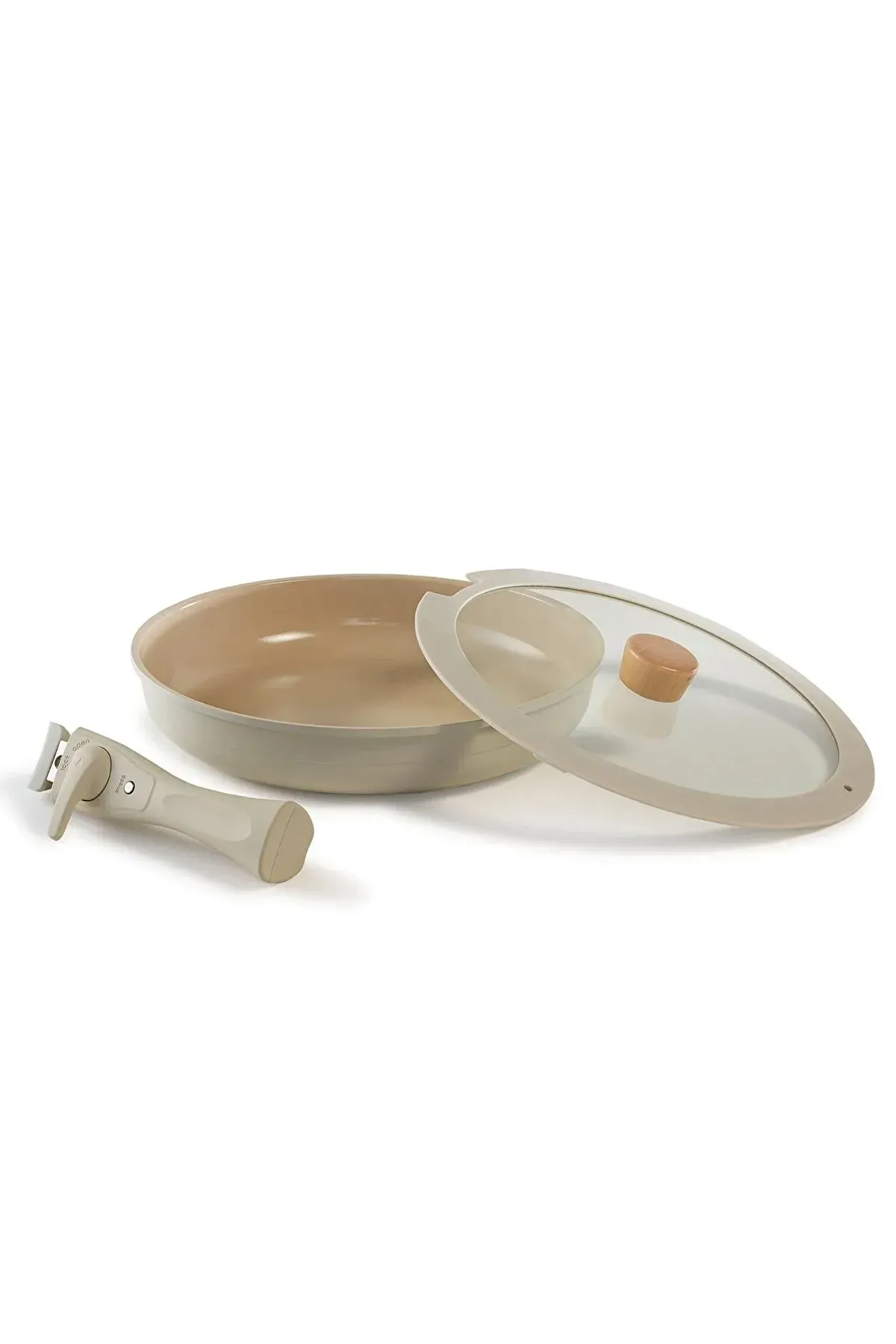 NEOFLAM Midas Bej 11 Parça Tencere Tava Seti Ayrılabilir Saplı, İç İçe Geçebilen, İndüksiyon Uyumlu