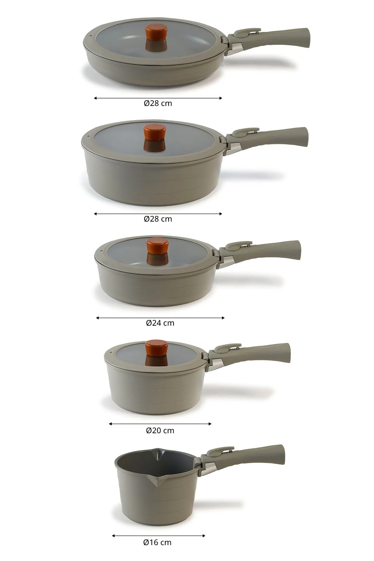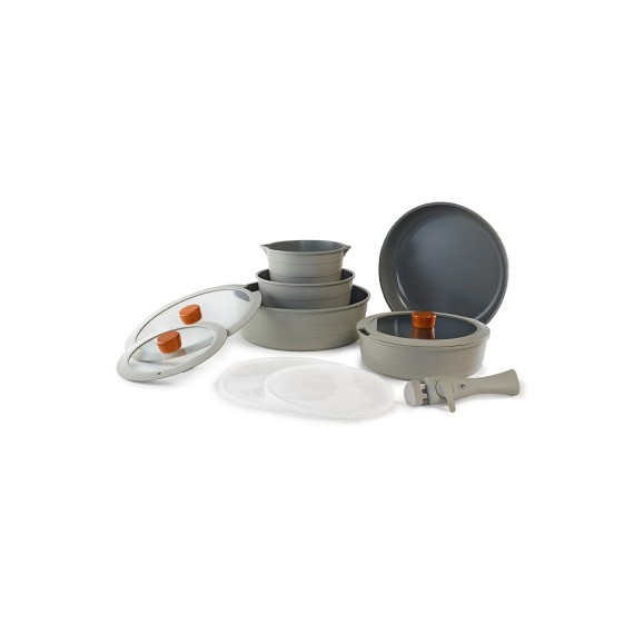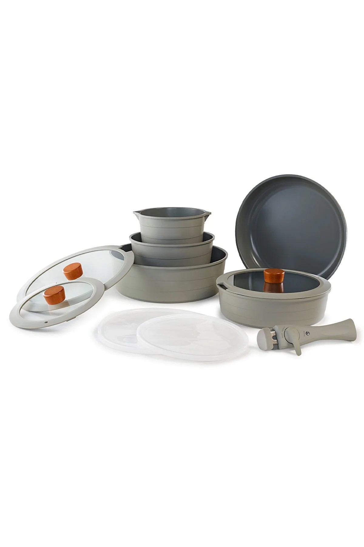 NEOFLAM Midas Gri 11 Parça Ayrılabilen Saplı iç içe Geçebilen Tencere Tava Seti D-NEOMDS11I-07