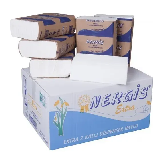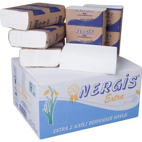 Nergis Z Katlı Kağıt Havlu; 20 gr/m² lamineli, çift katlı yapısı sayesinde sıvıyı hızla emer. Hijyenik, ekonomik ve dispenser uyumlu olmasıyla gıda üretim tesisleri, oteller, restoranlar ve ofisler için idealdir.