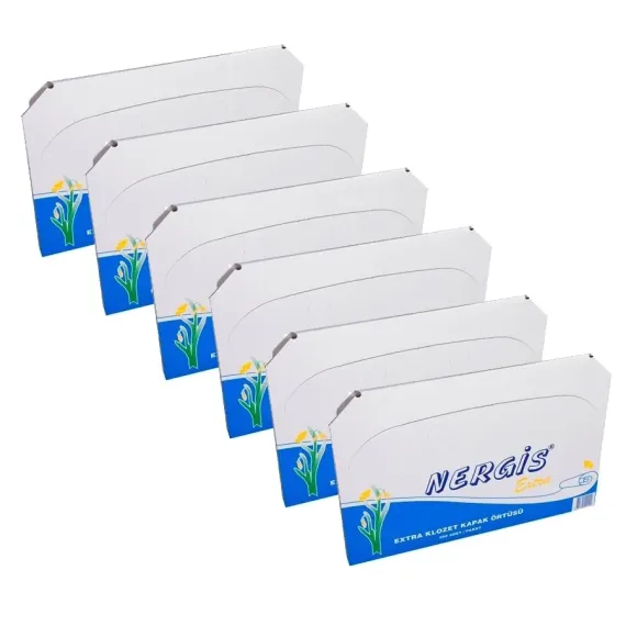 Nergis klozet kapak örtüsü, tek kullanımlık klozet örtüsü, Hijyen Market klozet örtüsü, 250 yaprak klozet kapak örtüsü, hijyenik klozet örtüsü, çift katlı klozet örtüsü, otel klozet örtüsü, hastane klozet kapak örtüsü, toplu kullanım klozet örtüsü, tuvalet hijyen ürünleri
