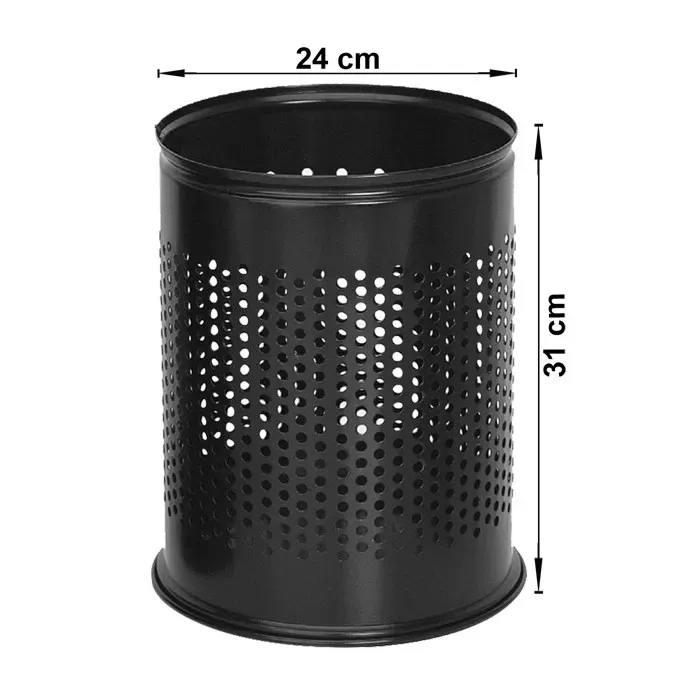 Okinox siyah delikli çöp sepeti, minimalist tasarımıyla her ofis dekorasyonuna uyum sağlar. Metal gövdesi ve elektrostatik boyalı yüzeyi, uzun yıllar boyunca paslanma veya deformasyon olmadan kullanılabilir.