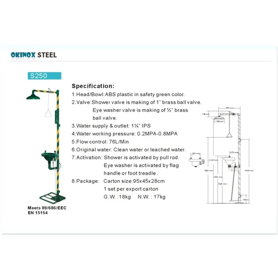 Okinox Acil Göz, Yüz ve Vücut Duşu İstasyonu 902645 S250