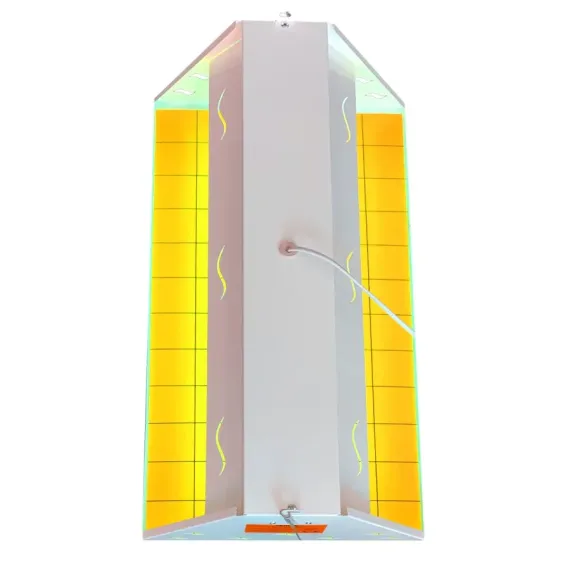 Bu cihaz, ultraviyole ışık ve yapışkan levhalar sayesinde haşereleri kendine çeker ve etkisiz hale getirir. Güçlü UV ışık kaynağı ve geniş yapışkan yüzeyi sayesinde 120 m²'lik alanı etkili bir şekilde korur.