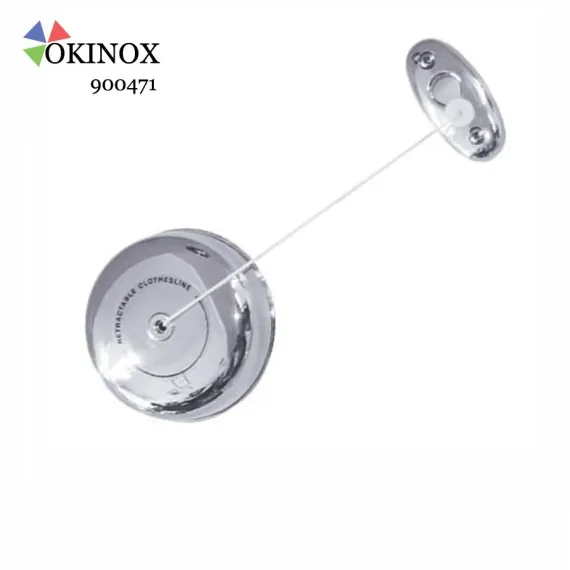 Okinox Çamaşır İpi, duvara monte ve toplanabilir tasarımıyla otel ve ev banyolarında pratik kullanım sunar. paslanmaz çelik ip, hem çamaşır asma hem de havlu veya bornozları kurutma için uygundur.