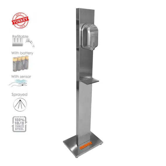 Okinox Dezenfektan Dispenseri ve Hijyen Noktası, Sensörlü, 304 Kalite Paslanmaz Çelik