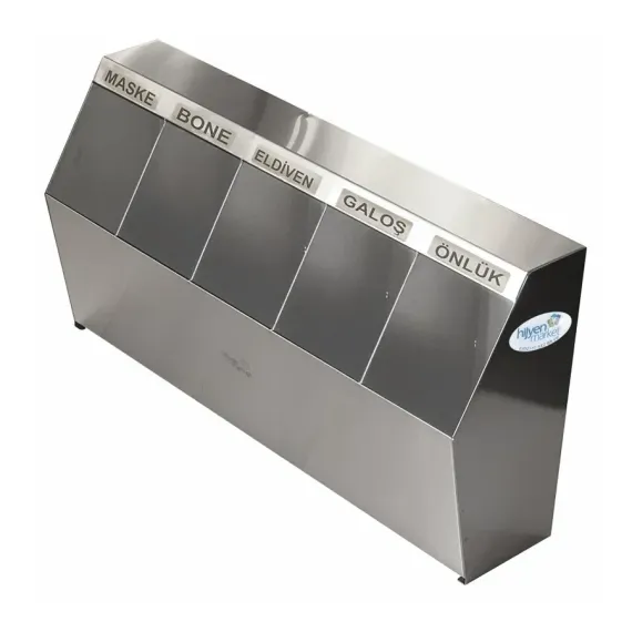 ✔ Ürünler duvara monte edilir. ✔ 3 veya 5 bölmeli olarak üretilebilir. ✔ Her bölmeye tek kullanımlık ürünler konulabilir. ✔ Kullanılabilen ürünler: Maske, bone, galoş, önlük, kolluk ve eldiven. ✔ Her bölmede yer alan sarf malzemelerinin ismi yazılıdır. ✔ Set modellerde, dolabın alt kısmında atıkların toplanması için bir bölme bulunur. ✔ Atık bölmesi kızaklı olup, kolayca çekilip boşaltılabilir.
