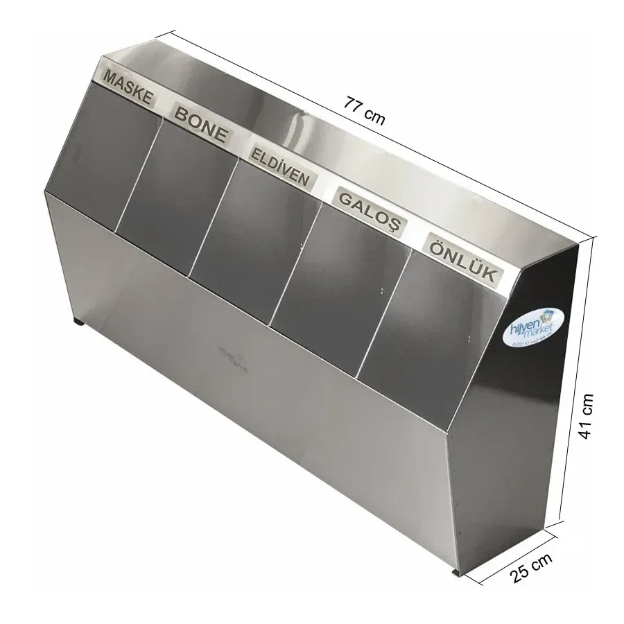 - 5 Bölmeli Tasarım: Galoş, bone, maske ve önlük gibi hijyen ekipmanlarını düzenli bir şekilde saklamanızı sağlar.