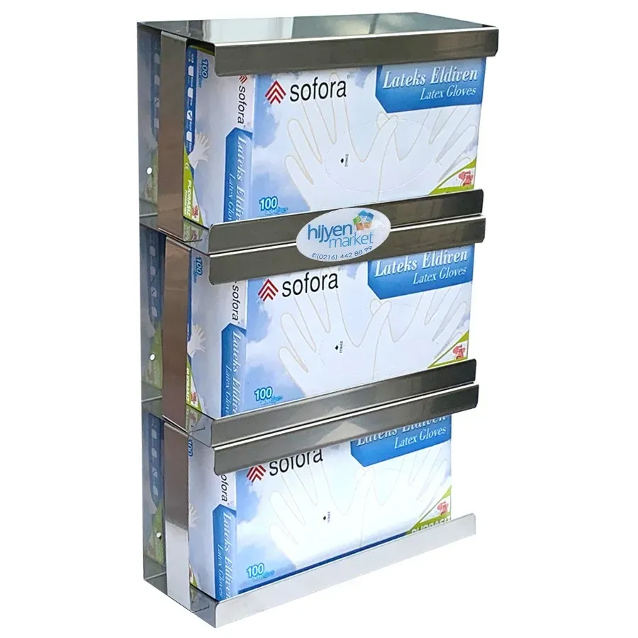 Okinox Eldiven Kutusu, Paslanmaz Çelik, Duvara Monte, 3 Bölmeli | HijyenMarket.net