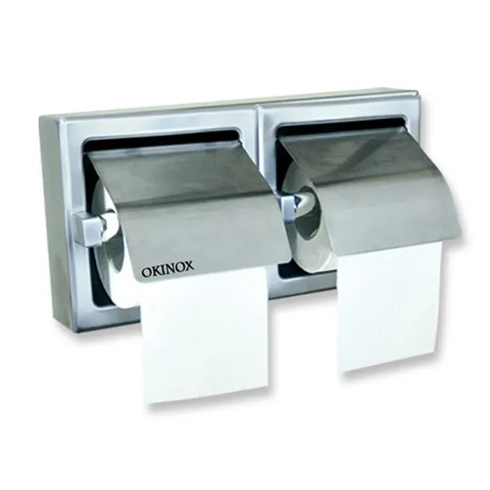 Okinox Yatay İkili Tuvalet Kağıtlığı – Paslanmaz Çelik, Kapaklı