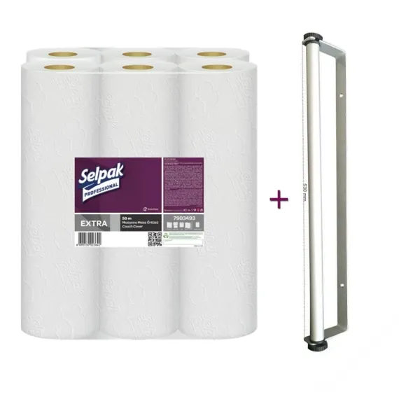 Selpak Muayene Masası Örtüsü, 6 Rulo ve Duvara Monte Aparatı
