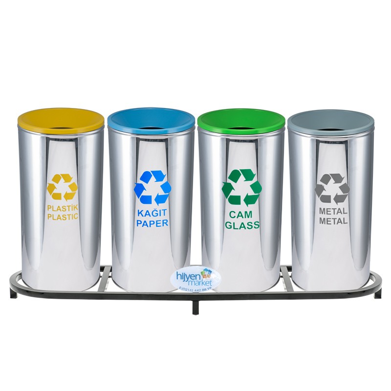 Set İçeriği: 4 adet geri dönüşüm kovası + paslanmaz çelik stand
