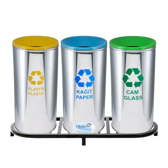 Set İçeriği: 3 adet geri dönüşüm kovası + paslanmaz stand