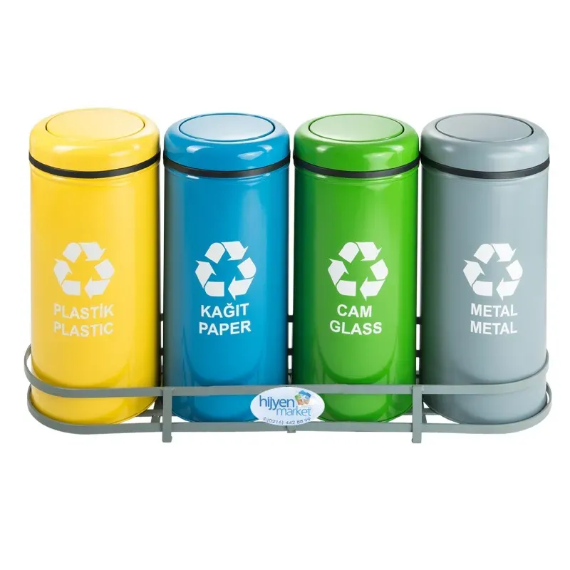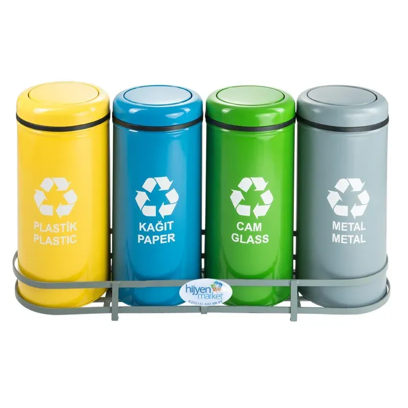 Okinox Geri Dönüşüm Kutusu, Döner Kapaklı, 4 Kutulu, Elektrostatik Boyalı