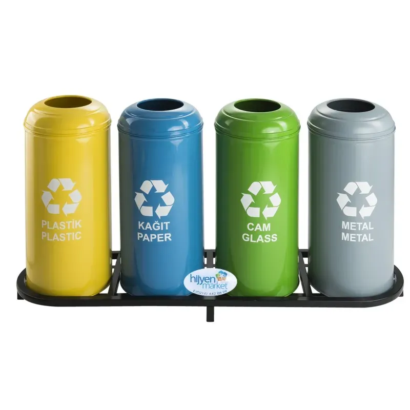Okinox Üstten Delikli Elektrostatik Boyalı Geri Dönüşüm Kutusu – 4’lü Sıfır Atık Ünitesi