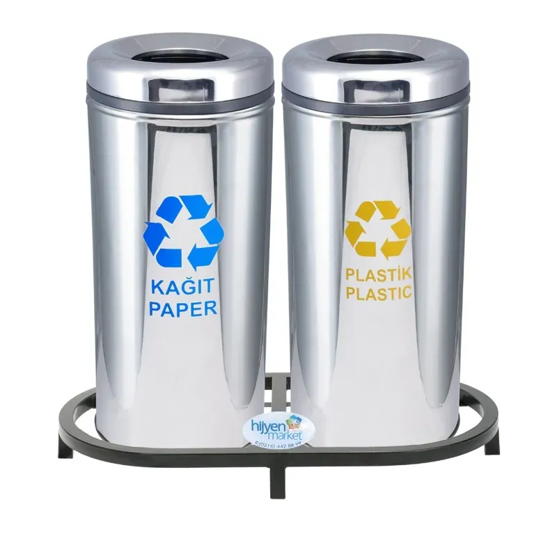 Okinox paslanmaz çelik çöp kovası, 2’li silindirik geri dönüşüm seti, üstten delikli atık kutusu, bombe kapaklı paslanmaz çöp kovası, Sıfır Atık Yönetmeliği uyumlu geri dönüşüm kutusu, İstanbul ofis geri dönüşüm kutusu, Ankara AVM atık kutusu, İzmir hastane geri dönüşüm seti, HijyenMarket Okinox çözümleri, dayanıklı paslanmaz çöp kovası.