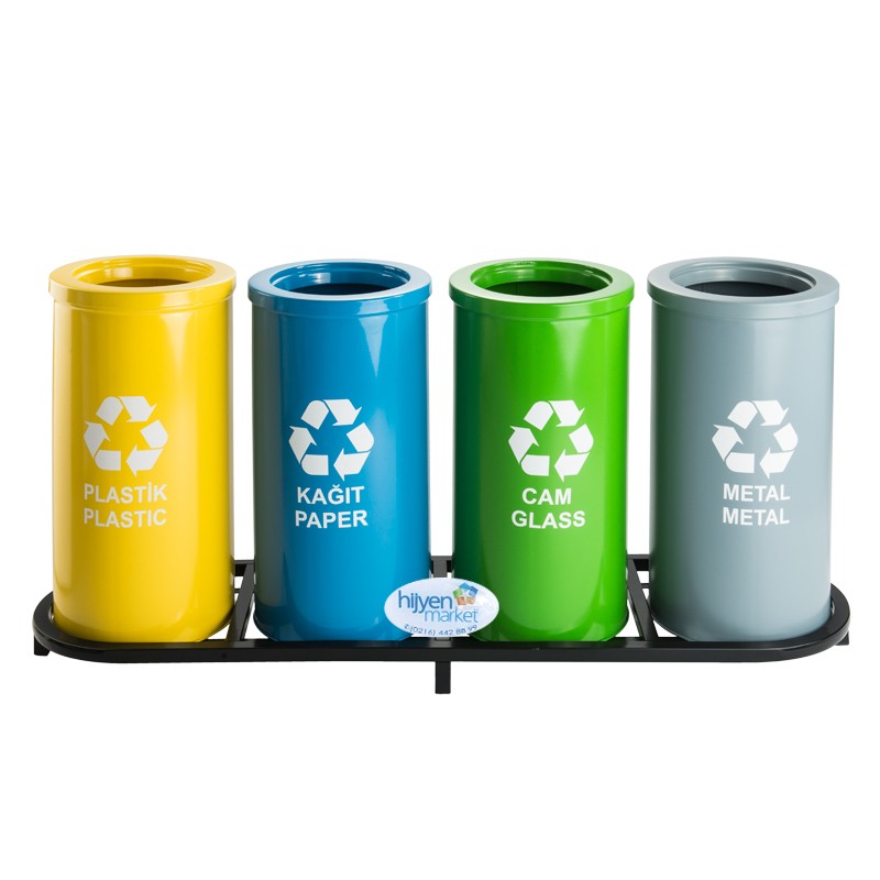 Okinox geri dönüşüm kutusu, 4’lü sıfır atık seti, elektrostatik boyalı çöp kovası, renkli çember kapaklı atık kutusu, çevre dostu geri dönüşüm kovası, ofis geri dönüşüm kutusu, boyalı metal geri dönüşüm seti, sıfır atık yönetmeliği kutusu, dayanıklı çöp kovası.
