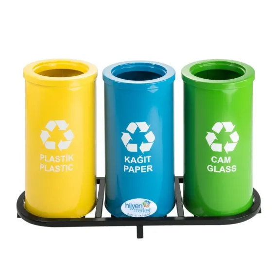 Okinox geri dönüşüm kutusu, 3’lü sıfır atık seti, elektrostatik boyalı çöp kovası, renkli çember kapaklı atık kutusu, çevre dostu geri dönüşüm kovası, ofis geri dönüşüm kutusu, paslanmaz boyalı atık kutusu.