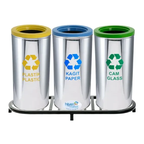Okinox geri dönüşüm kutusu, paslanmaz çelik çöp kovası, sıfır atık kutusu, 3’lü atık ayrıştırma seti, renkli kapaklı geri dönüşüm kovası, çevre dostu atık kutusu, ofis tipi geri dönüşüm seti, HijyenMarket geri dönüşüm ürünleri, atık yönetimi ekipmanları, paslanmaz geri dönüşüm kovası.