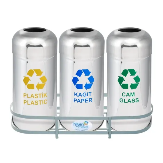 paslanmaz geri dönüşüm kutusu, Okinox 3’lü çöp kovası, sıfır atık uyumlu atık kutusu, 430 kalite paslanmaz çelik, çevre dostu geri dönüşüm kovası, endüstriyel çöp kovası, paslanmaz atık kutusu, ofis geri dönüşüm kutusu, Hijyen Market geri dönüşüm ürünleri, Okinox sıfır atık kovası