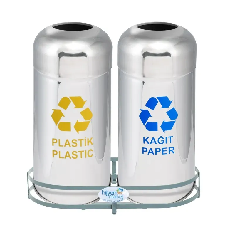 paslanmaz geri dönüşüm kutusu, Okinox 2’li çöp kovası, sıfır atık uyumlu atık kutusu, paslanmaz atık kutusu, çevre dostu geri dönüşüm kovası, 430 kalite paslanmaz çelik, ofis geri dönüşüm kutusu, endüstriyel çöp kovası, çiftli atık kutusu, Hijyen Market geri dönüşüm kutuları