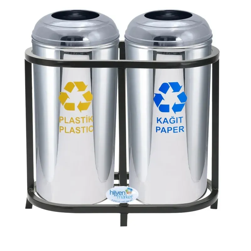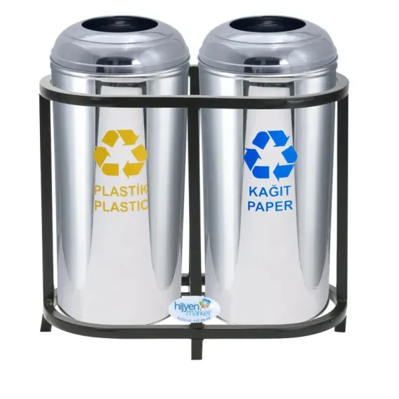 Okinox geri dönüşüm kutusu, 2’li paslanmaz çelik çöp kovası, torpil kapaklı atık kutusu, sıfır atık çöp kovası, paslanmaz çelik geri dönüşüm kutusu, metal geri dönüşüm seti, çift bölmeli atık kovası, HijyenMarket çöp kovası, çevre dostu atık kutusu, Sıfır Atık Yönetmeliği kutusu