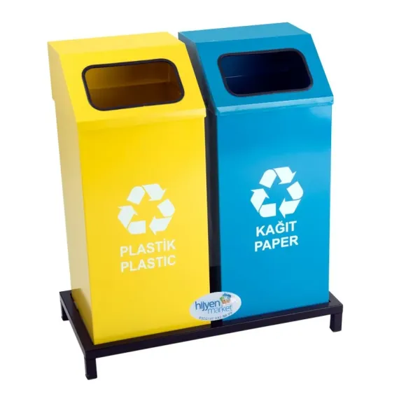 Genellikle kağıt ve plastik ya da cam ve metal gibi iki farklı atık türü için kullanılır. Etiketli renklerle bu ayrım kolaylaştırılır.