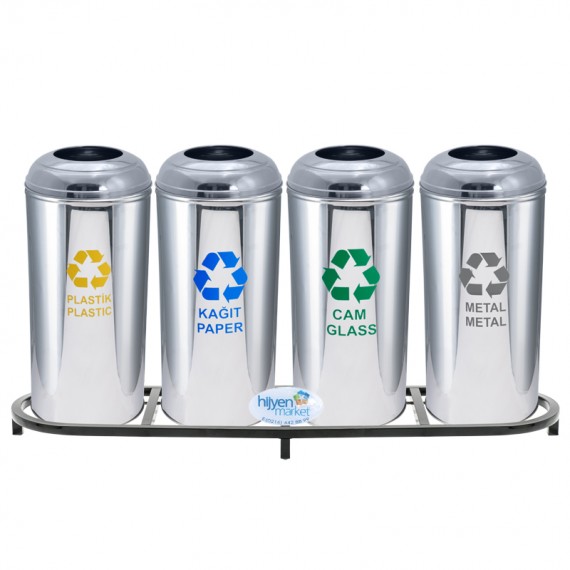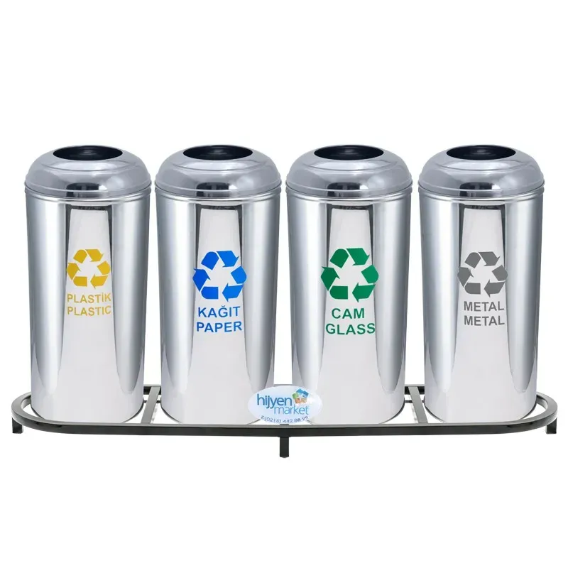Okinox Paslanmaz Çelik 4’lü Geri Dönüşüm Kutusu – Sıfır Atık Yönetmeliğine Uygun, Şık ve Dayanıklı Çözüm