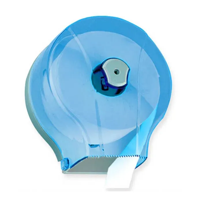 Vialli Jumbo Tuvalet Kağıdı Dispenseri; mavi ön yüzeyi ve gri arka tasarımıyla modern, dayanıklı ve yoğun kullanım alanlarına uygun bir üründür. 240 mm çap kapasitesi sayesinde jumbo rulolarla uyumlu çalışır ve işletmeler için kesintisiz hijyen sağlar.