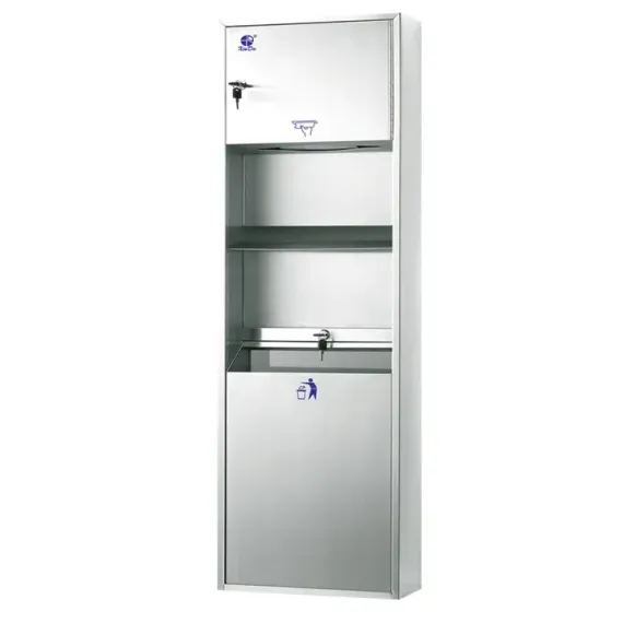 Xinda Kombi Sistem Sıva Üstü Dolap Sistemi, dayanıklı 304 paslanmaz çelik yapısı, geniş kağıt havlu kapasitesi ve taşınabilir çöp kovasıyla hijyenik alanlarda estetik ve pratik bir kullanım sağlar.